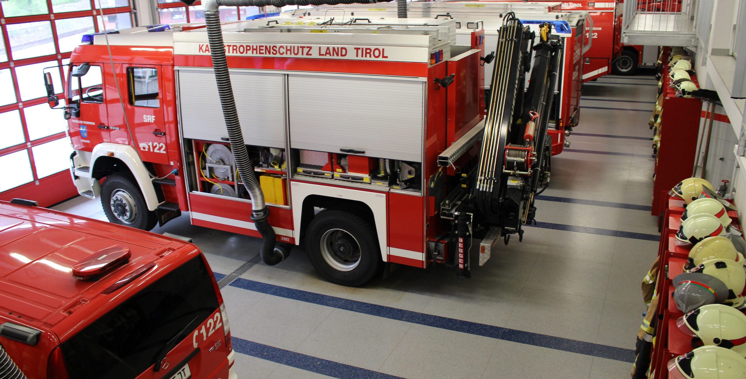 Im Erdgeschoss befinden sich Garagen für unsere acht Feuerwehrfahrzeuge, eine Waschhalle, die Florianstation sowie der Gemeinschaftsraum. Weiters befindet sich im Erdgeschoss eine Werkstätte für den Gerätewart und die Atemschutzwerkstätte.