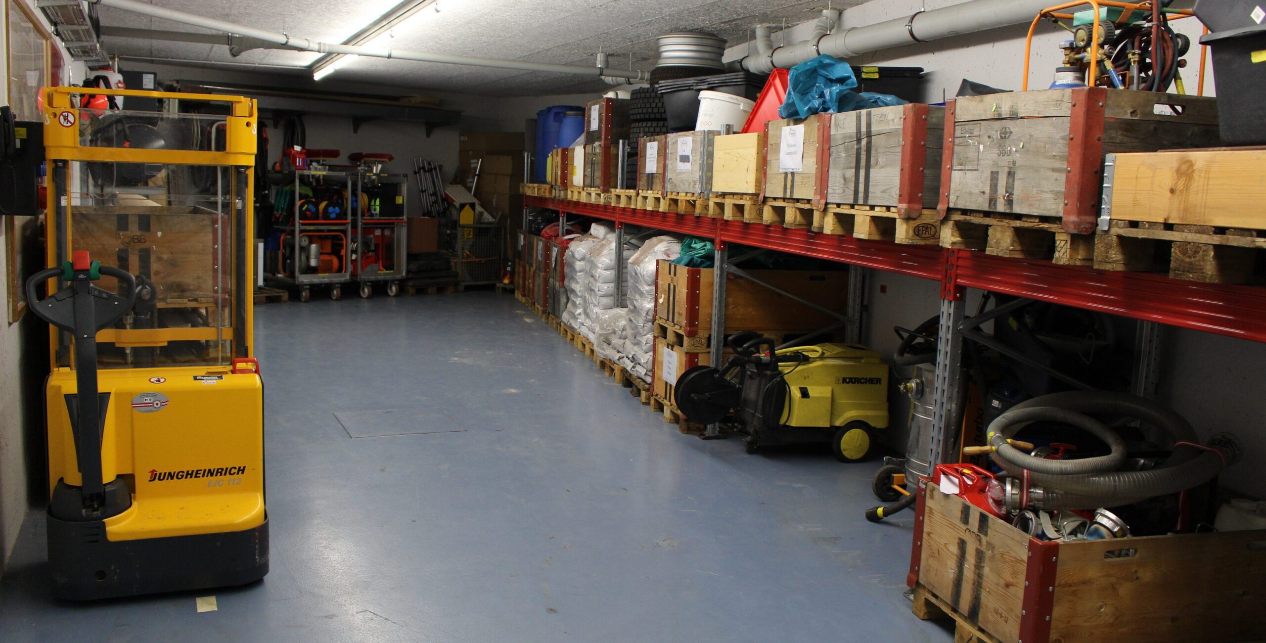 Im Keller befinden sich hautsächlich Parkplätze für die Feuerwehrmitglieder, das KAT-Lager, die Schlauchwasch- und überprüfanlage und eine weitere Werkstätte.