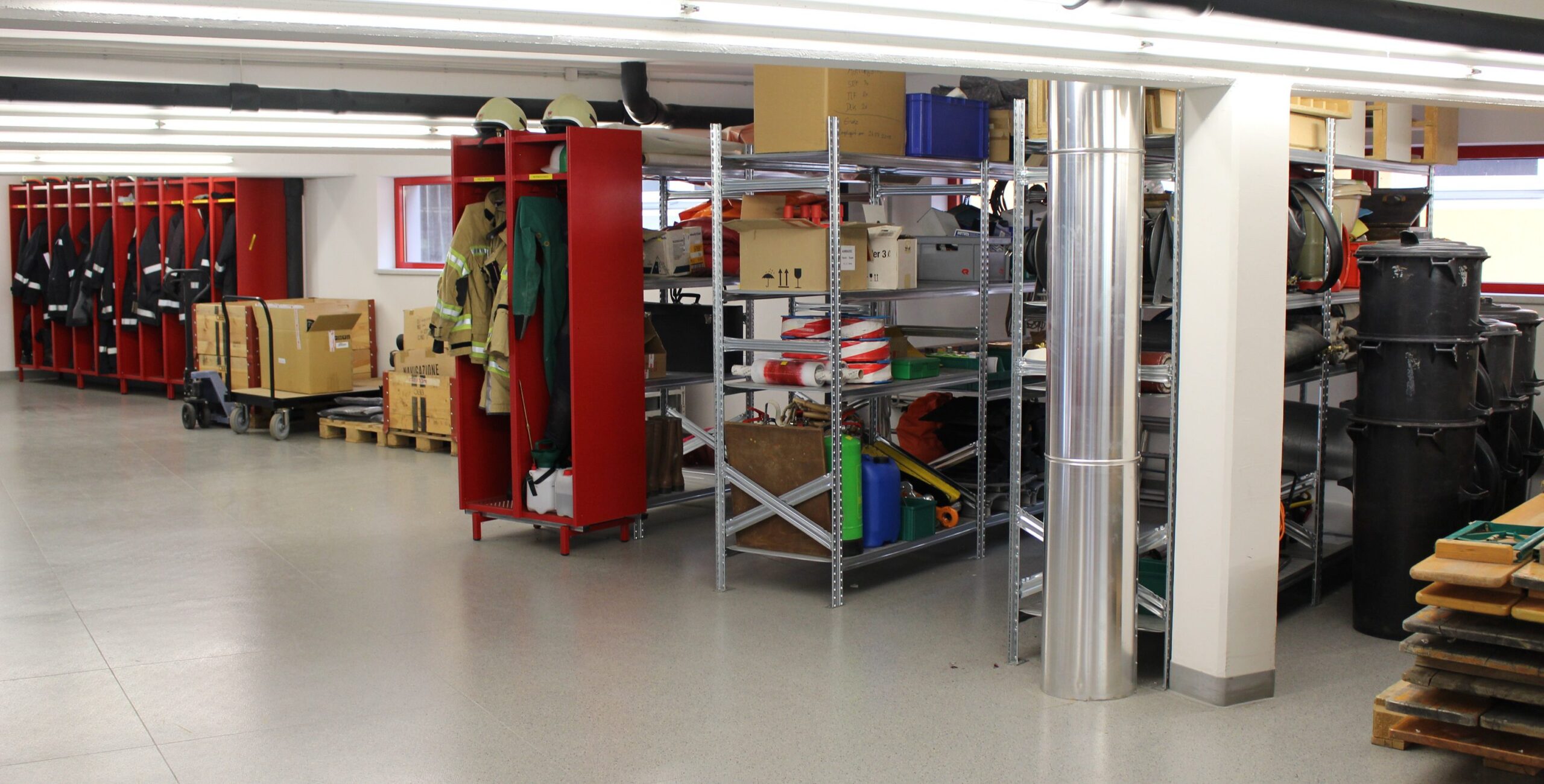 Im 1. Obergeschoss befinden sich die Büroräume für das Kommando, sowie ein kleiner Sitzungsraum und ein großer Schulungsraum, welcher bis zu 100 Personen fassen kann.